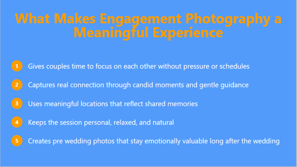 This guide focuses on real moments, honest emotions, and practical details that couples often ask about before booking an engagement shoot.